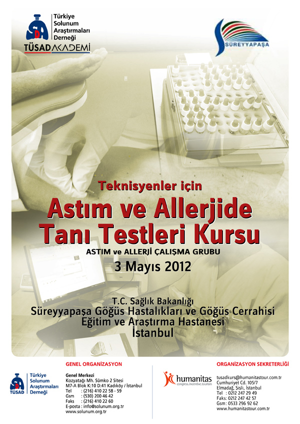 Astım allerji çalışma grubunun düzelediği teknisyenler için "astım ve allerjide tanı testleri kursu" Süreyyapaşa Eğitim ve Araştırma Hastanesinde başarıyla gerçekleşitirildi. Eğitimde emeği geçen hocalarımıza ve yoğun ilgi gösteren katılımcılarımıza teşekkür ediyoruz.