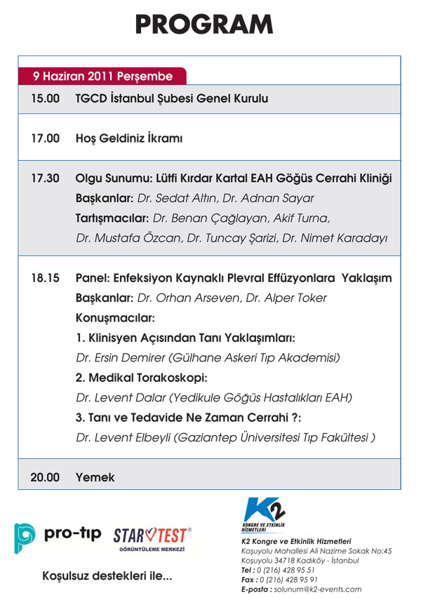 Enfeksiyon Kaynaklı Plevral Effüzyonlara Yaklaşım : 9 Haziran 2011