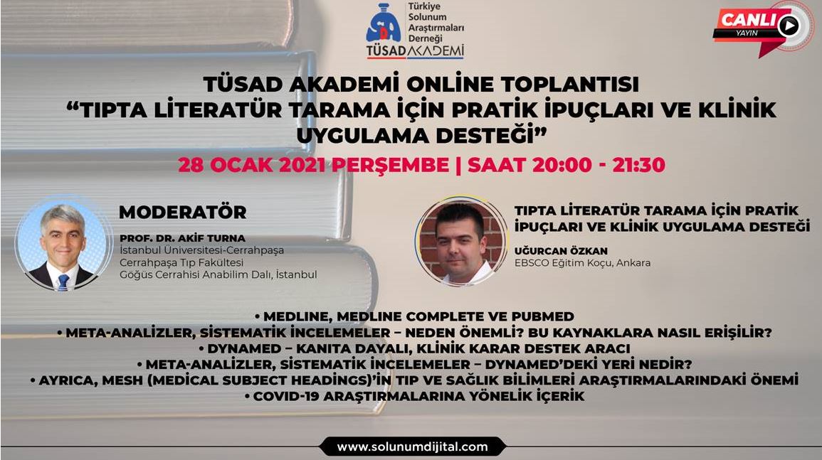 TÜSAD Canlı Yayın "Tıpta Literatür Tarama İçin Pratik İpuçları ve Klinik Uygulama Desteği" toplantısı
