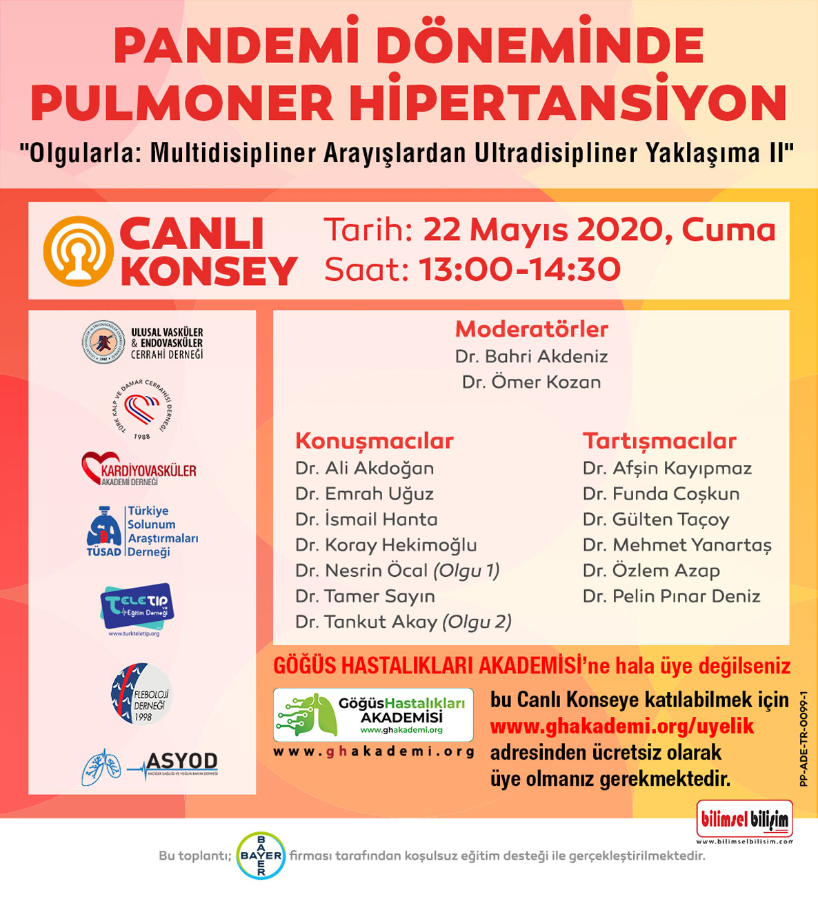 GÖĞÜS HASTALIKLARI AKADEMİSİ’ne hala üye değilseniz www.ghakademi.org/uyelik adresinden ücretsiz üye olarak bu Canlı Konseye katılabilirsiniz.