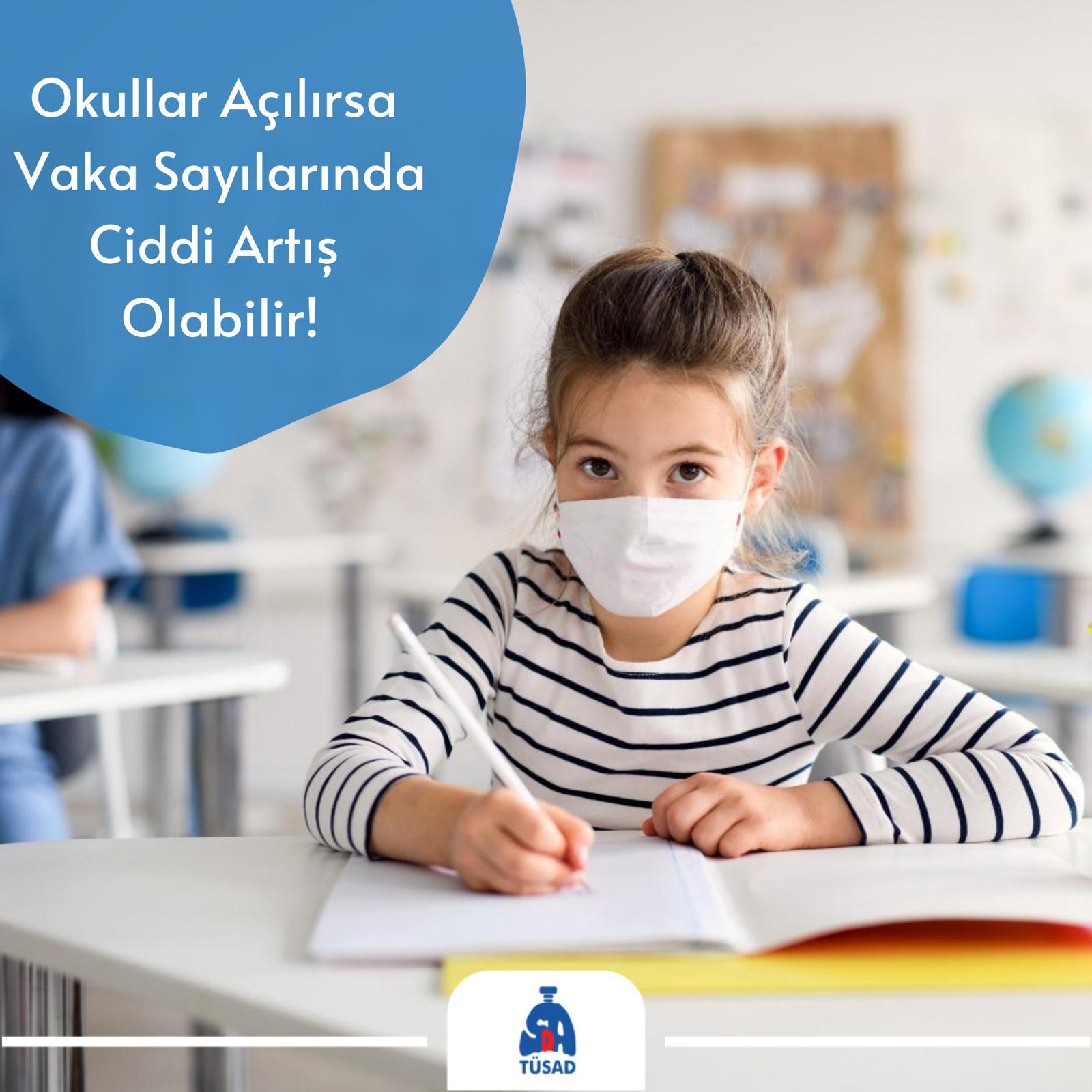 TÜSAD olarak, tüm dünya genelinde ve ülkemizde de COVİD-19 hastalığı, giderek artan hasta sayılarıyla toplum sağlığı açısından ciddi bir risk oluşturmaya devam ettiğini belirtiyor ve okulların açılmasının birçok noktada riskler içerdiğine dikkat çekiyoruz. Etkin bir tedavi yöntemi ya da aşı geliştirilene kadar hastalığın tüm dünyada ve ülkemizde giderek artan hasta sayısı ile hastalıkla ilişkili ölüm riskinde artışa neden olabilir.