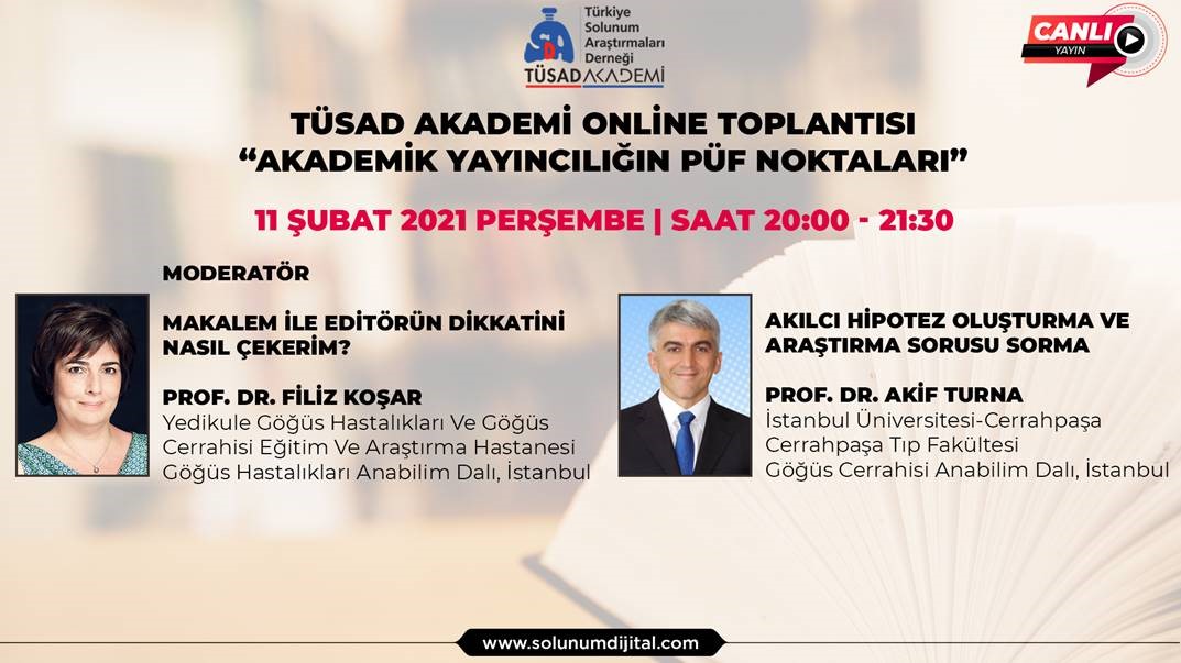 TÜSAD Akademi tarafından düzenlenen, canlı yayın olarak gerçekleştirdiğimiz “Akademik Yayıncılığın Püf Noktaları” konulu toplantımızın gördüğü yoğun ilgiden dolayı siz değerli üyelerimize, moderatörlük görevini üstlenen Prof. Dr. Filiz Koşar’a, değerli yorumlarıyla konuşmacı olarak katılan Prof. Dr. Akif Turna hocamıza, ekran karşısında bizlere katılan meslektaşlarımıza bir kez daha teşekkür ederiz.