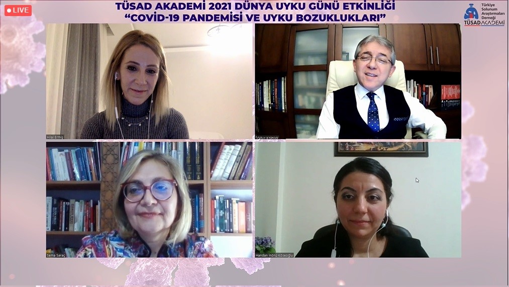 TÜSAD Akademi ve Uyku Bozuklukları Çalışma Grubu'nun ortaklaşa düzenlediği,canlı yayın olarak gerçekleştirdiğimiz “COVİD-19 Pandemisi ve Uyku Bozuklukları” konulu toplantımızın gördüğü ilgiden dolayı siz değerli üyelerimize, moderatörlük görevini üstlenen Prof. Dr. Oğuz Köktürk'e, değerli yorumlarıyla konuşmacı olarak katılan Doç. Dr. Sema Saraç, Prof. Dr. Handan İnönü Köseoğlu ve Prof. Dr. Hilal Ermiş hocalarımıza, ekran karşısında bizlere katılan meslektaşlarımıza bir kez daha teşekkür ederiz.