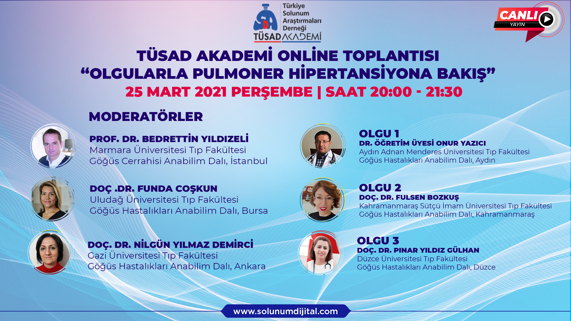 TÜSAD Akademi ve DPAH Çalışma Grubu'nun ortaklaşa düzenlediği,canlı yayın olarak gerçekleştirdiğimiz "Olgularla Pulmoner Hipertansiyona Bakış" konulu toplantımızın gördüğü ilgiden dolayı siz değerli üyelerimize, moderatörlük görevini üstlenen Prof. Dr. Bedrettin Yıldızeli, Doç. Dr. Funda Coşkun ve Doç. Dr. Nilgün Yılmaz Demirci'ye, değerli yorumlarıyla konuşmacı olarak katılan Doç. Dr. Fulsen Bozkuş, Doç. Dr. Pınar Yıldız Gülhan ve Dr. Öğretim Üyesi Onur Yazıcı hocalarımıza, ekran karşısında bizlere katılan meslektaşlarımıza bir kez daha teşekkür ederiz.