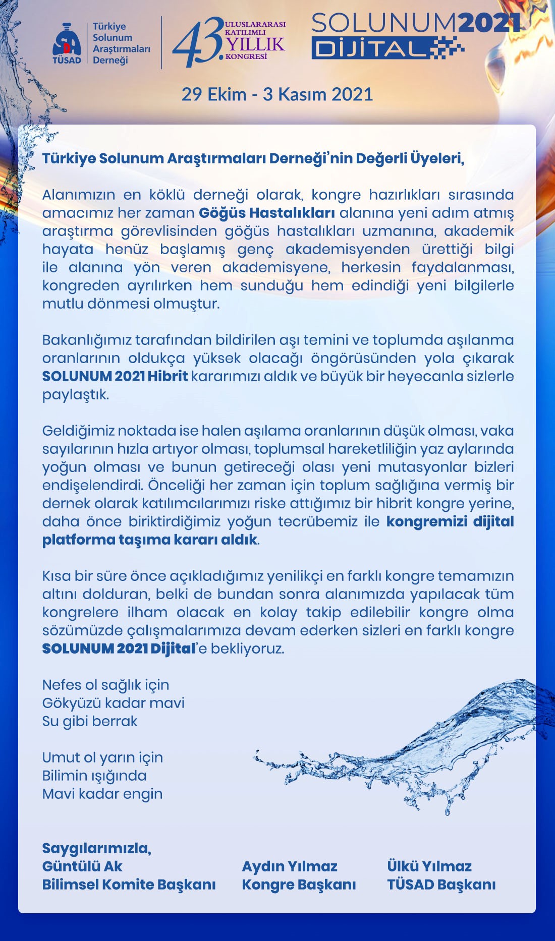 Solunum 2021 kongremizi Dijital platforma taşıma kararı aldık