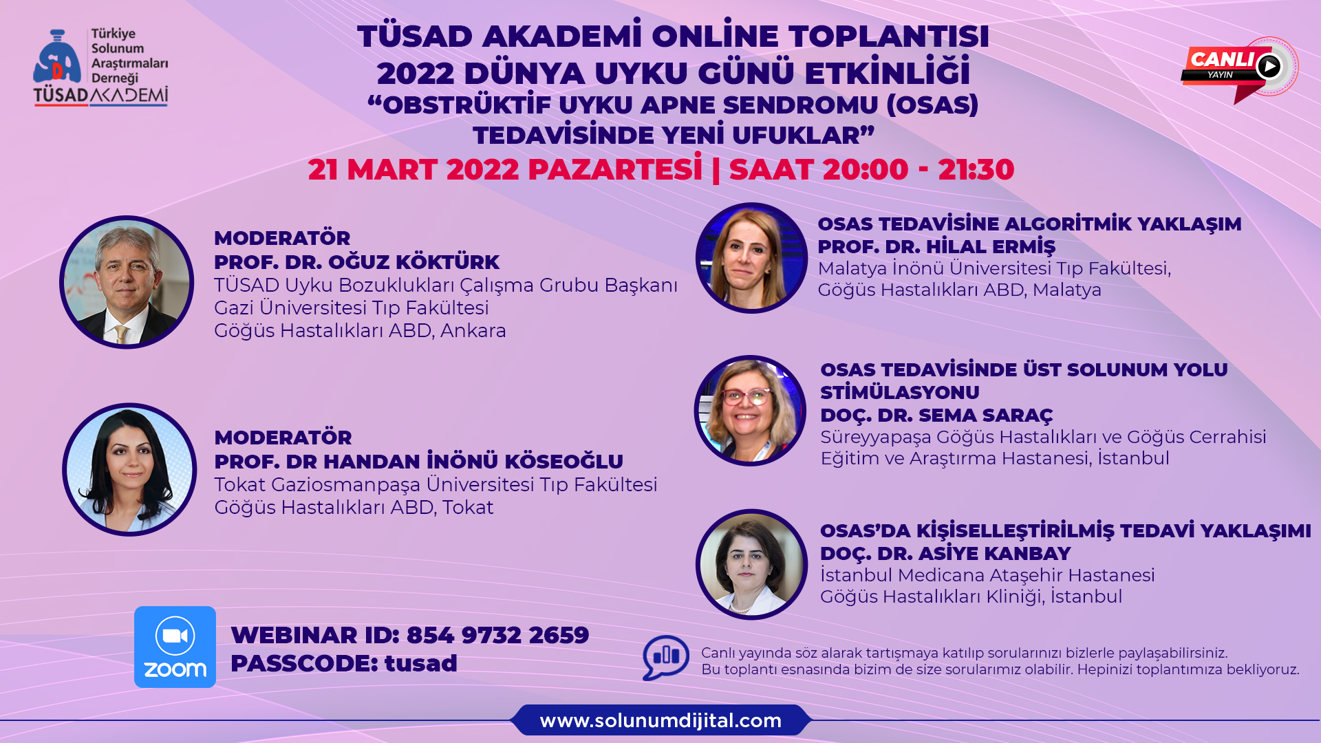 TÜSAD Akademi ve Uyku Bozuklukları Çalışma Grubunun 2022 Dünya Uyku Günü Etkinlikleri kapsamında ortaklaşa düzenlediği ve canlı yayın olarak gerçekleştirdiğimiz