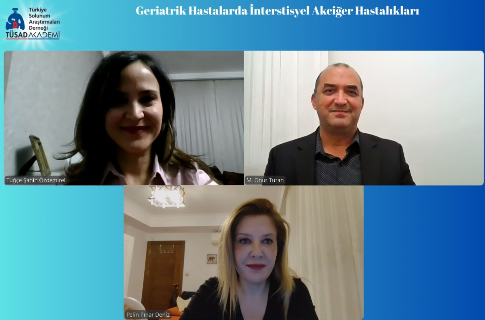 TÜSAD Akademi, Geriatri Çalışma Grubu ve DPAH Çalışma Grubu tarafından hazırlanan "Geriatrik Hastalarda İnterstisyel Akciğer Hastalıkları" konulu webinara göstermiş olduğunuz yoğun ilgiden dolayı siz değerli üyelerimize, moderatörlük görevini üstlenen Prof. Dr. M. Onur Turan'a, değerli yorumlarıyla konuşmacı olarak katılan Doç. Dr. Tuğçe Şahin Özdemirel ve Uzm. Dr. Pelin Pınar Deniz'e ve ekran karşısında soruları ile bizlere katılan meslektaşlarımıza bir kez daha teşekkür ederiz.