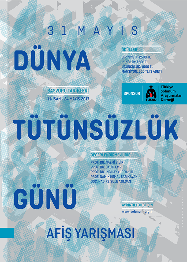 Türkiye Solunum Araştırmaları Derneği tarafından Hacettepe Üniversitesi Güzel Sanatlar Fakültesi Grafik Anasanat Dalı işbirliği ile 31 Mayıs Dünya Tütünsüzlük Günü münasebeti ile Afiş Yarışması düzenlenmiştir. Yarışmanın teması, Dünya Sağlık Örgütü tarafından bu yıl için belirlenen “Tütün; gelişme için tehdit” olarak belirlenmiştir.